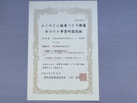 ・ 「社員にいつまでも健康で働いてもらえる」ことを願い、当社では県が推進する「ふじのくに健康づくり推進事業所」の認定